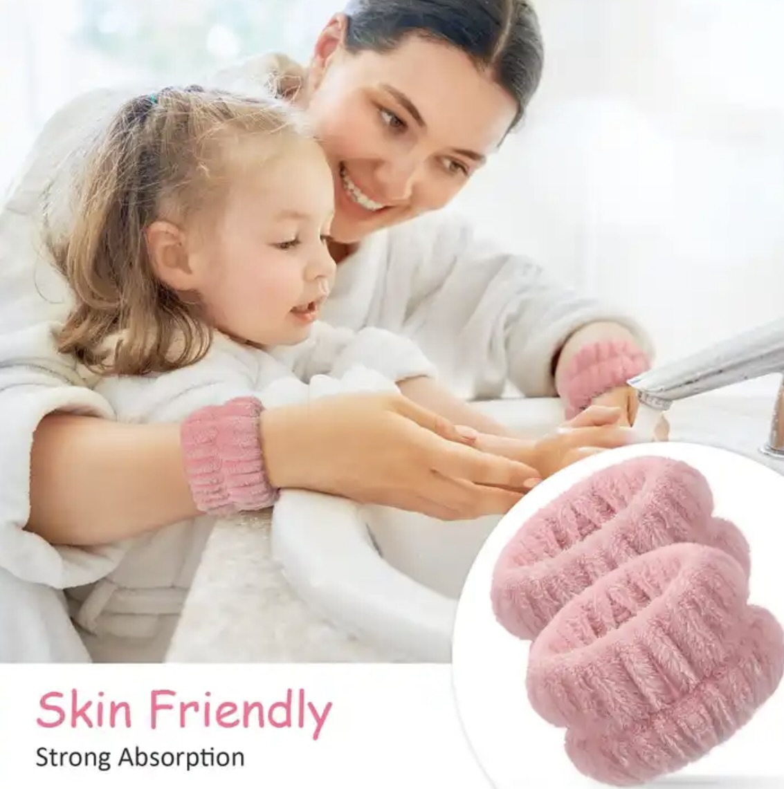 When you wash your face, you always had water splashing everywhere. Water used to run all the way down to your elbows and now the water gets absorbed into the face wash wristbands, doesn’t let the water run down your arms. With these washbands, you barely have water splashing on your counter. Made of microfiber, and will provide you with a soft and comfortable using experience, breathable and serviceable for reuse, and will not do harm to your delicate skin.